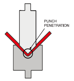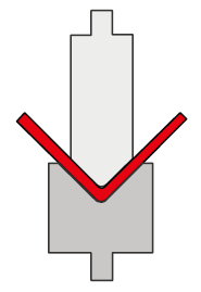 How it works: The punch tip presses the material into a V-die without touching the die edges, using only three contact points. The bend angle is determined by how deeply the punch is pressed into the die.